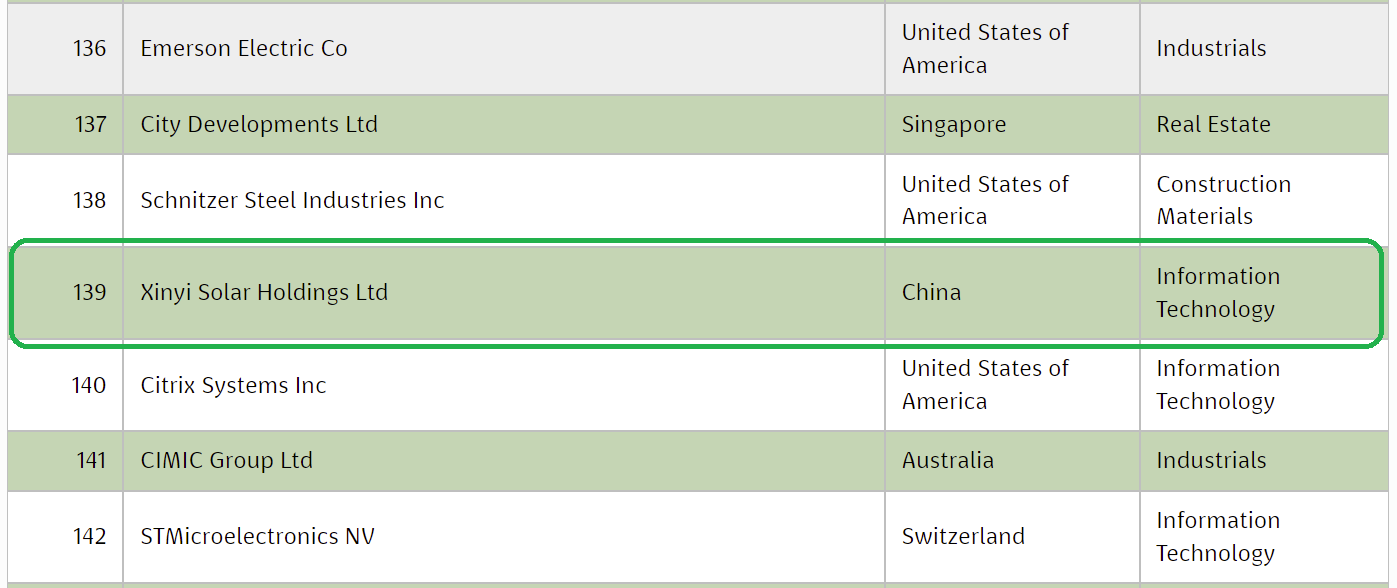Xinyi Solar Makes “2022 Carbon Clean 200?”